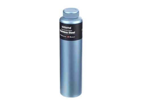 Generic - زجاجة مياه من الفولاذ المقاوم للصدأ بسعة 600 مل، جدار مزدوج معزول للحفاظ على المشروبات 12 ساعة باردة / 6 ساعات ساخنة من سيستيما، لون بيبي بلو