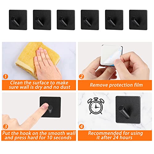 SISYS - خطافات لاصقة من سيسيس 6 قطع 3 متر شماعات باب للتعليق على الحائط لغرفة النوم والمطبخ والحمام وغرفة المعيشة مقاومة للماء أسود الألومنيوم الحد الأقصى للوزن الموصى به: 5.0 كيلوجرام