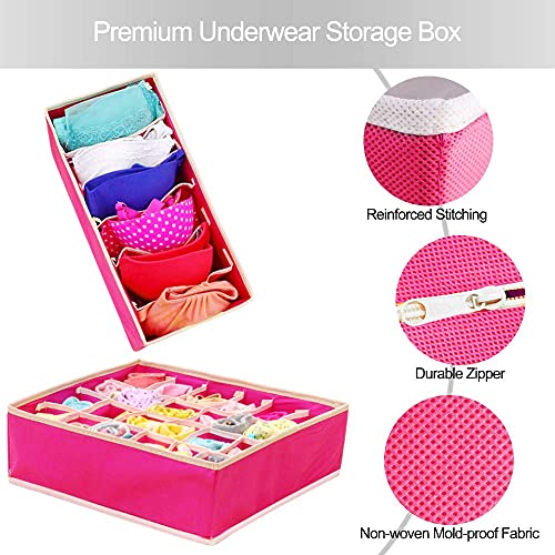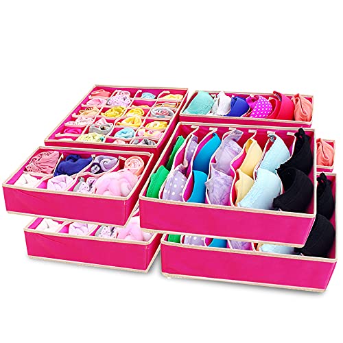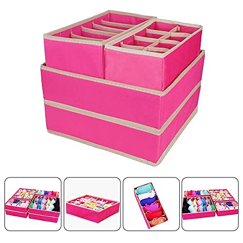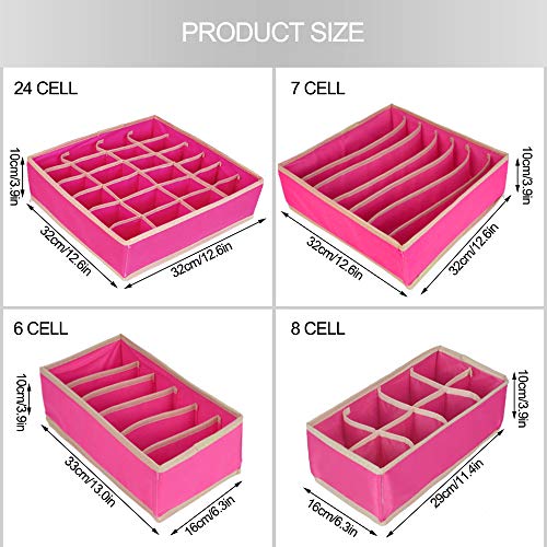 SITAKE - SITAKE 8 Set Foldable Closet Underwear Organizer, Storage Boxes Under Bed Organizer for Underwear, Bras, Socks, Ties, Belts, Tank Tops - Drawer Dresser Divider - Closet Organizers - 8 Pack (Pink)