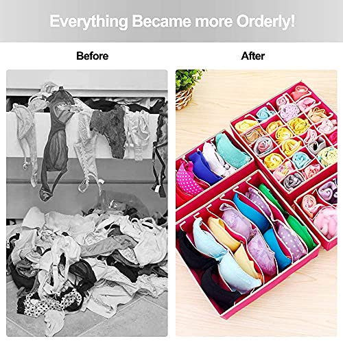 - 🍀 4 Various Storage Space -- 6 cells bins for tank tops or ties; 7 cells bins for bras or underwear; 8 cells bins for pants; 24 cells bins for socks or other accessories, 4 kinds of storage space look simple and stylish, can meet your different organization needs.