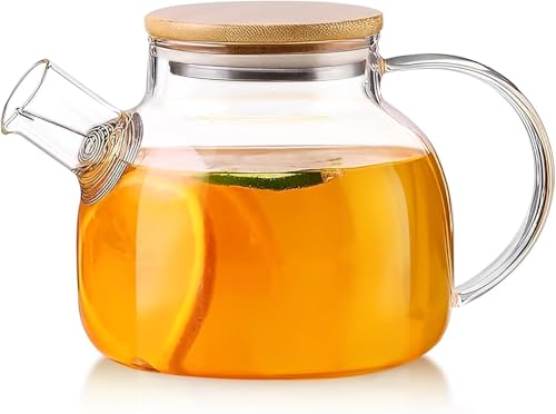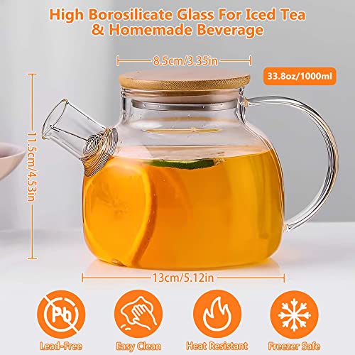 SITIEPA - Glass Tea Pot Kettles Stovetop Safe, 33.8oz/1000ml Heatproof Borosilicate Glass Teapot Water Pitcher With Bamboo Lid and Removable Filter Spout for Loose Leaf and Blooming Tea
