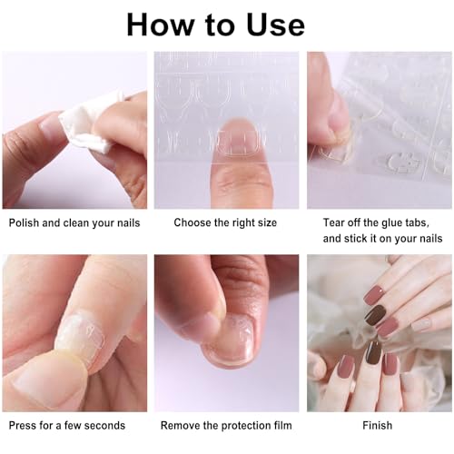 - Easy to Handle: Self-adhesive nail tabs double sided,perfect and easy for professional and home use. It can make the false nail reuse, fit for beginners, children, pregnant women, a perfect tool/gifts for nail art lovers! Just clean nails (dry them), choose the right false nail, and press it for about 10 seconds to finish the manicure.
