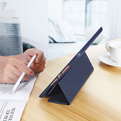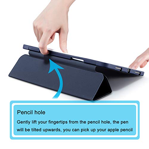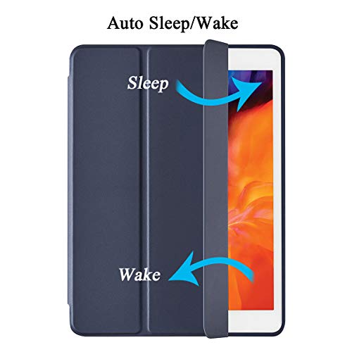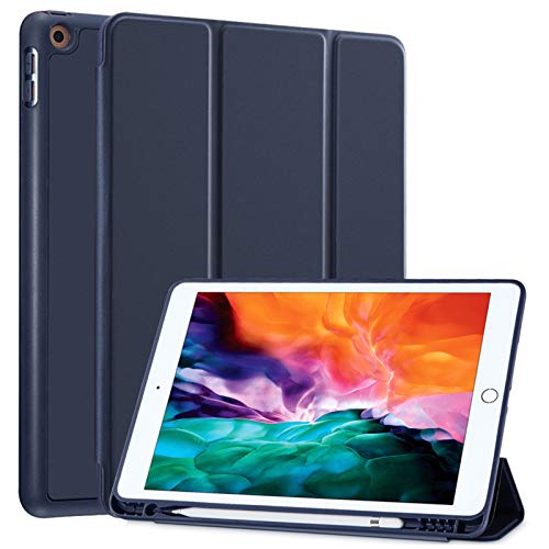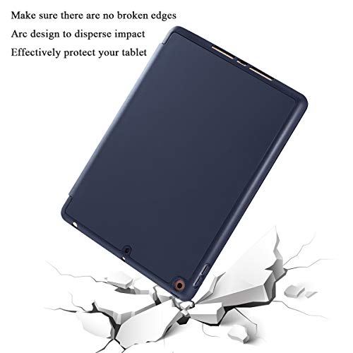SIWENGDE - جراب حماية رفيع ذكي من البولي يوريثين المقاوم للحرارة ثلاثي الطيات يمكن استخدامه كمسند ومزود بحامل قلم ووظيفة سكون-تشغيل تلقائي سيويندج متوافق مع ايباد 10.2 بوصة الجيل 9-8-7 ازرق غامق لأجهزة لوحية