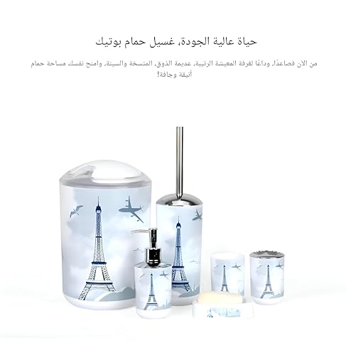 - The comprehensive design includes six essential items—lotion bottle with pump, toothbrush holder, rinsing cup, soap dish, small trash bin, and shower brush—providing complete organization that enhances your bathroom decor.