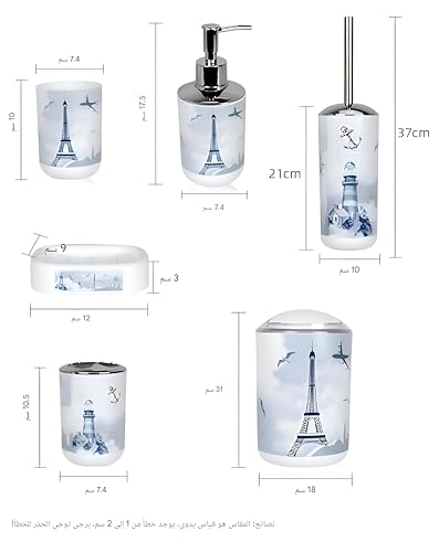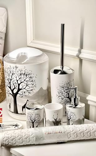 - This six-piece bathroom set combines Scandinavian-inspired prints with modern minimalist design, transforming any bathroom into a serene, stylish oasis that balances practicality with aesthetic appeal for daily elegance.
