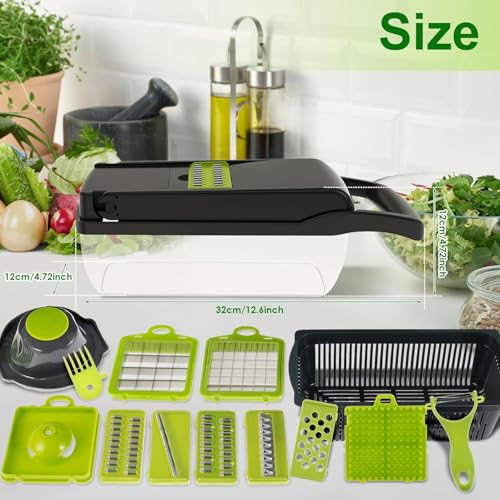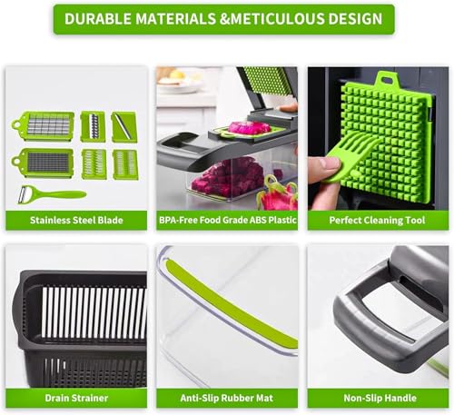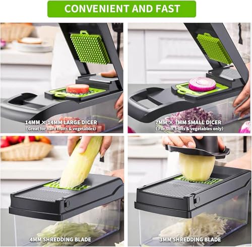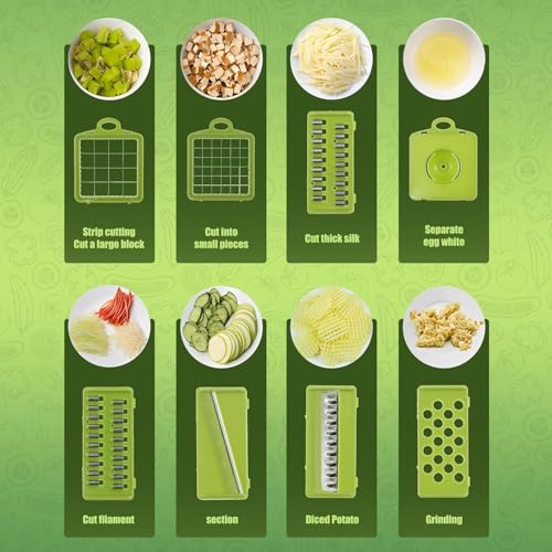 - 【UNIVERSAL CLIPING & HUMAN 】This multi-functional 16 in 1 multi-functional chopper combines straight & wave slice and various shape humans, making brewing vegetables, fruit, potato faster and more accurate, saving you time and effort on preparing healthy, delicious daily meals with no additional tools in the kitchen. 1 X