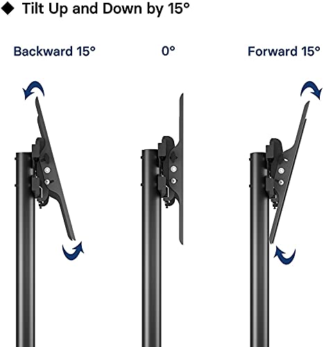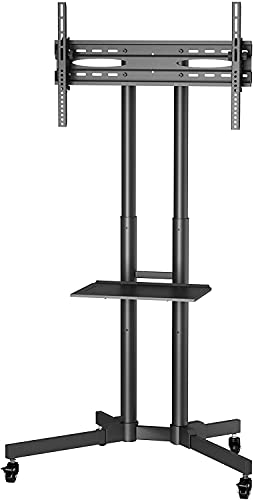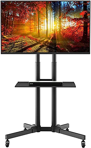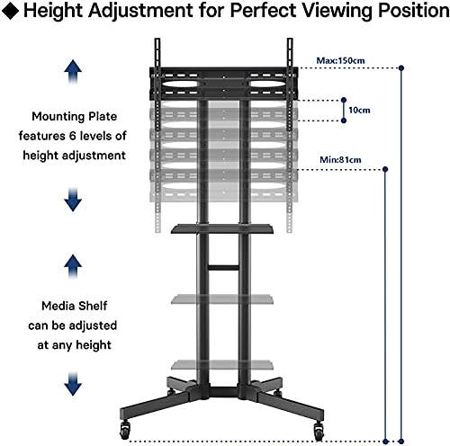 - HEIGHT ADJUSTABLE TV CART - Our rolling tv stand can be tilted up and down by 15°, height adjustable from 43.3-62.9?? to provide the most comfortable viewing angle; The mobile TV cart comes with a sturdy media shelf to hold a laptop, DVD, or gaming devices.