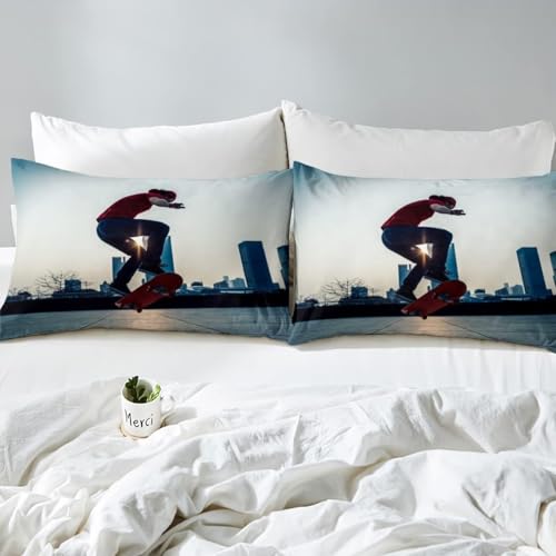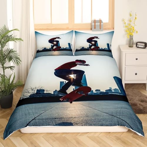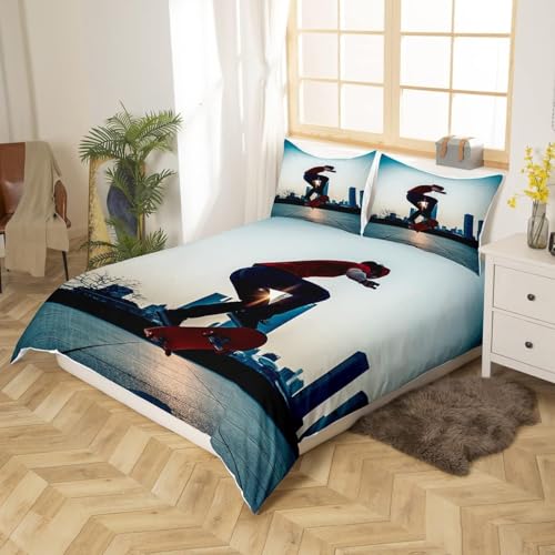 Generic - طقم غطاء لحاف بتصميم لوح تزلج للأطفال الأولاد والمراهقين من 3 قطع، غطاء لحاف بنمط الرياضات الشديدة، غطاء لحاف من البوليستر الناعم مع 2 كيس وسادة (بدون لحاف) مقاس كوين