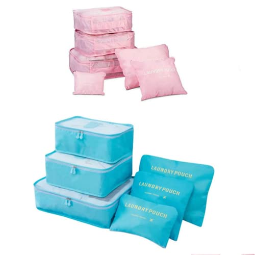 SKEIDO - SKEIDO 12pcs/set Travel Organizer Storage Bags Portable Luggage Organizer Clothes Tidy Pouch Suitcase Packing Laundry Bag Storage Case(6 blue +6 pink)