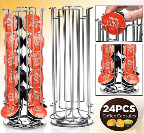 - 💕 STYLISH DESIGN-This Stylishly Designed Revolving Capsule Holder allows you to hold up to 24 Dolce Gusto capsules in 4 different tiers.