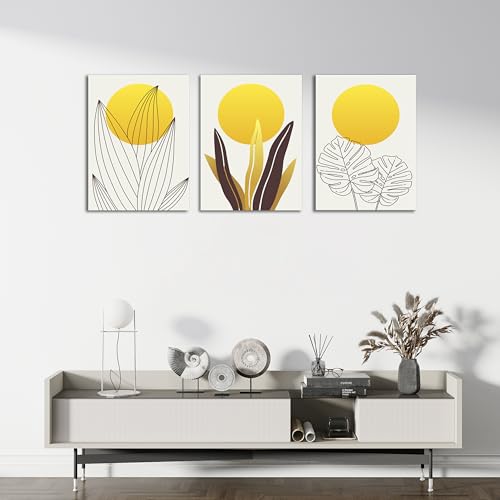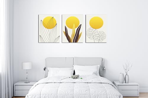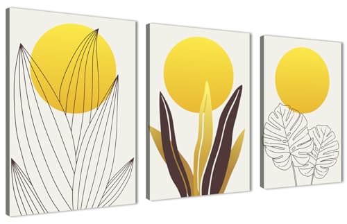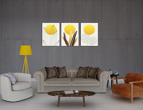 Skills - Skills Abstract Botanical Wall Art with Large Botanical Leaves and Yellow Circles - Wall Hanging for Living Room, Bedroom, Office Decorations and More (30cm x 40cm x 3pcs)