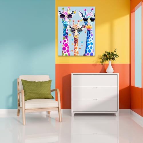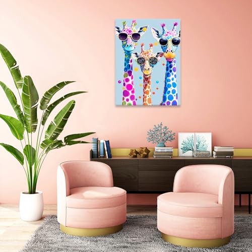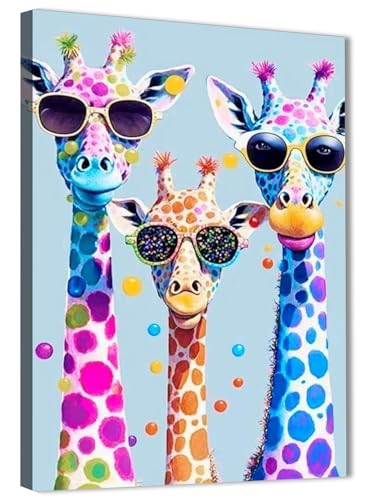 Skills - Skills Canvas Wall Art - Three Giraffes Wearing Modern Sunglasses - Wall Art - Wall Art for Living Room, Bedroom, Office Decorations & More - Size (30cm x 40cm)