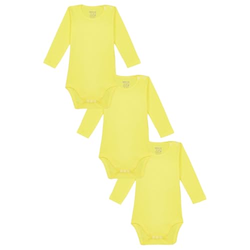Skills - سكيلز طقم سالوبيت بكباسين قطن 3 قطع باكمام طويلة ورقبة دائرية للجنسين - اصفر - 6-9 اشهر