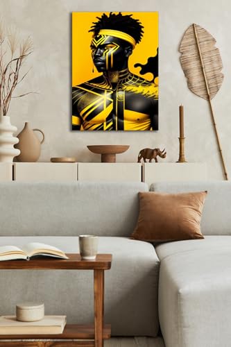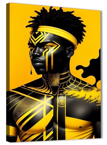 Skills - لوحات فنية جدارية تتميز برجل ذي بشرة داكنة مزين بأنماط هندسية صفراء نابضة بالحياة - تعلق على الحائط لتزيين غرفة المعيشة وغرفة النوم وديكورات المكتب وغيرها - مقاس (40 سم × 60 سم ) من سكيلز