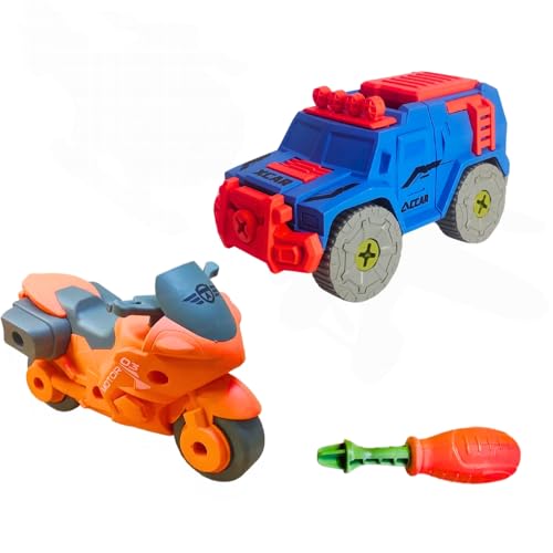 Generic - Skills Development Vehicle Set with Screwdriver, Nuts and Bolts Multi Color with 2 Pieces for Multiple Fun and Fun (Police SUV with Motorcycle Motorcycle)