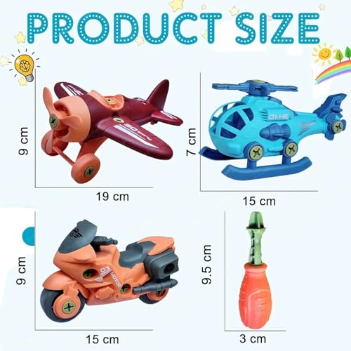 - ◕【Perfect Sizes】 Bike and helicopter (15cm),SUV (7.5cm) for comfortable play.