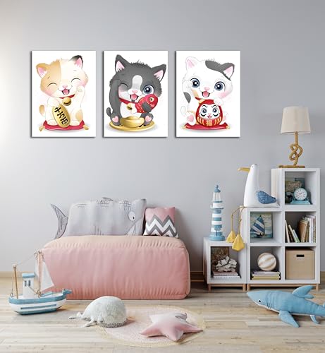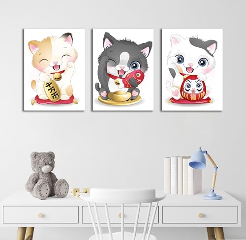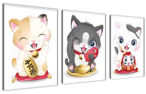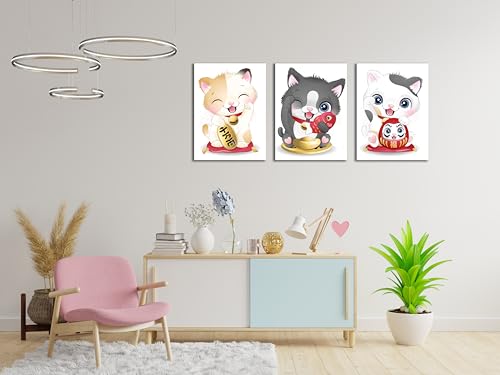 Skills - Skills Funny Cartoon Cat Wall Art "Maniki Niko", or What is known as a lucky cat or a lucky cat - Wall Hanging for Room Decor and Home Decor (30cm x 40cm x 3pcs)