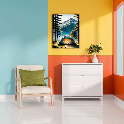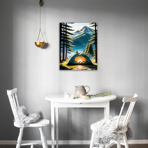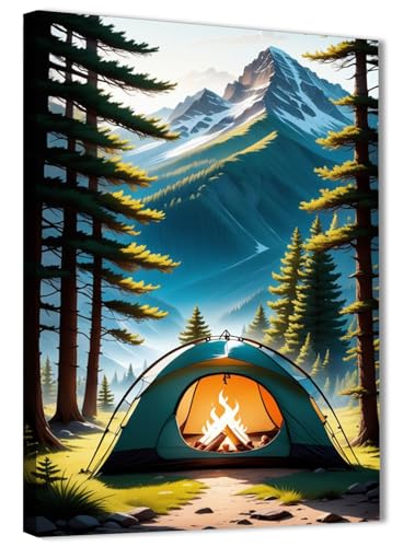 Skills - لوحة فنية تصور مشهدًا طبيعيًا لمخيم في بيئة جبلية وغابية - تعلق على الحائط لتزيين غرفة المعيشة وغرفة النوم وديكورات المكتب وغيرها - مقاس (30 سم × 40 سم ) من سكيلز