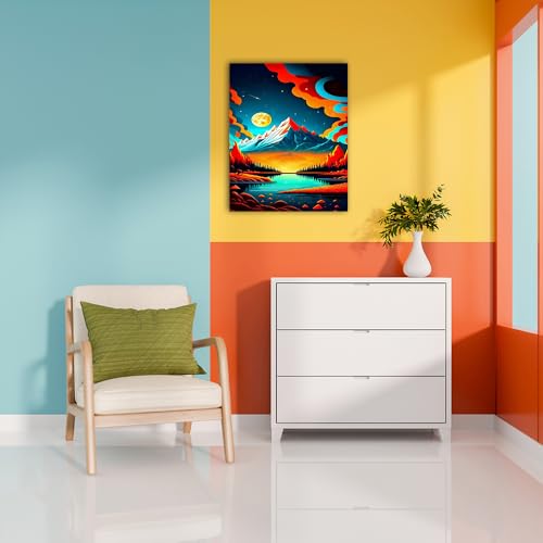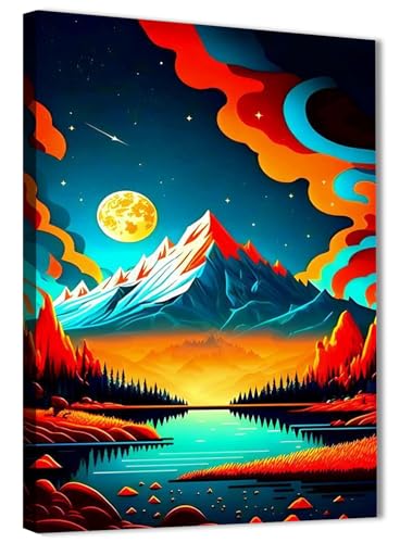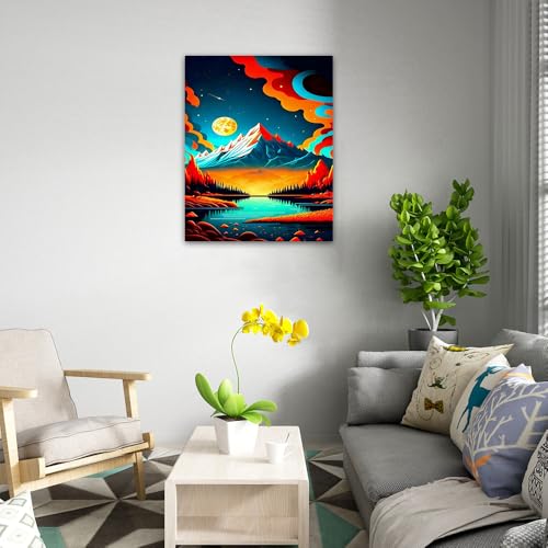 Skills - Skills - Surreal Night - Mountain Landscape - Wall Art - Wall Art for Living Room, Bedroom, Office Decorations & More - Size (30cm x 40cm)