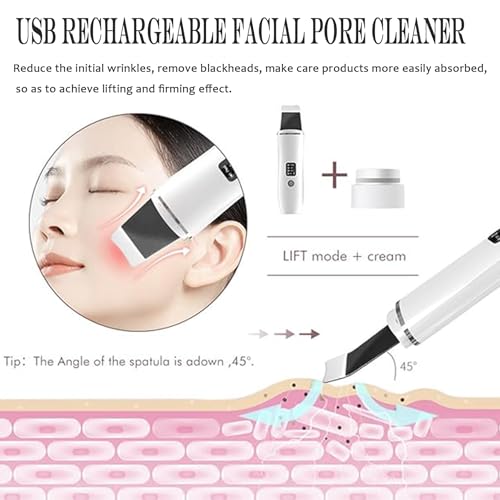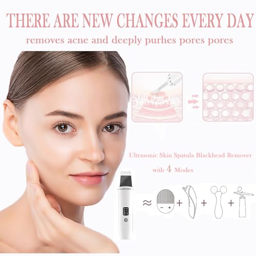 UPVINO - Skin Scrubber, Ultrasonic Skin Spatula Face Blackhead Remover Scraper with 4 Modes, Portable and Rechargeable Pore Scrubber USB Rechargeable Black Head Remover for Face Deep Cleansing