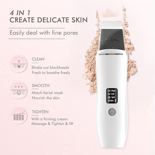 - 4 Modes Skin Spatula - Our facial spatula is designed for deep cleaning, it can push blackheads, whiteheads, dead skin cells and residuals makeup out of the skin, promoting clear and radiant skin. Simply wet your face and glide the spatula for a spa-like experience.