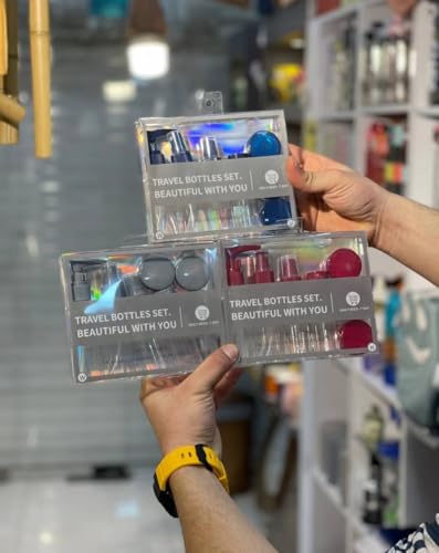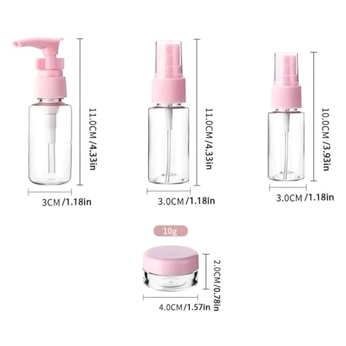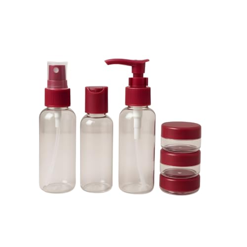 Generic - Skincare Travel Bottles Set, Clear with Red and Pink Caps, Includes Spray, Pump and 6 Jars, Portable Refillable Cosmetic Containers Multiple Colors (1)