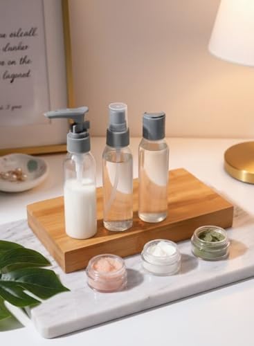 - COMPLETE TRAVEL KIT: Includes 6 Pieces - Spray Bottle, Pump Bottle, Squeeze Bottle, and 3 Mini Jars to Organize All Your Skin Care and Cosmetics While Travel