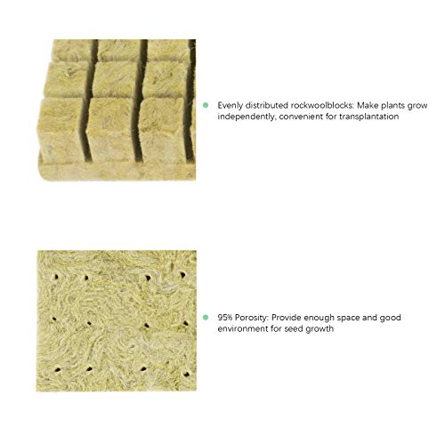 - PLANTING COST REDUCTION- The Rockwool creates a structure perfectly suited to retain water while holding more oxygen than typical mediums, which lowers down the frequency of irrigation of water or fertilizer, and reduces the cost of irrigation