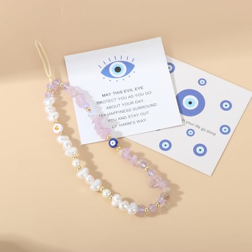 SKIRIFLA - Evil Eye Phone Charm Strap Cell Phone Lanyard Phone Charms Strap Beaded Phone Charms Evil Eye Phone Lanyard Crystal Phone Strap Evil Eye Phone Chain Preppy Phone Charm Kawaii Phone Keychain