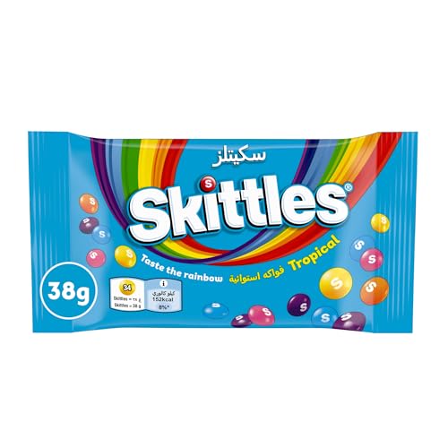 Skittles - Skittles Tropical Sweets 38g, Candy with Passion Fruit, Watermelon, Pineapple, Tropical Juice, and Orange. (Pack of 6)