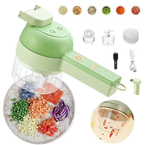 SKJJL - 4 in 1 Portable Electric Vegetable Slicer Set, Portable Electric Vegetable Slicer, Mini Garlic Chopper for Ginger, Chili, Fruit, Meat