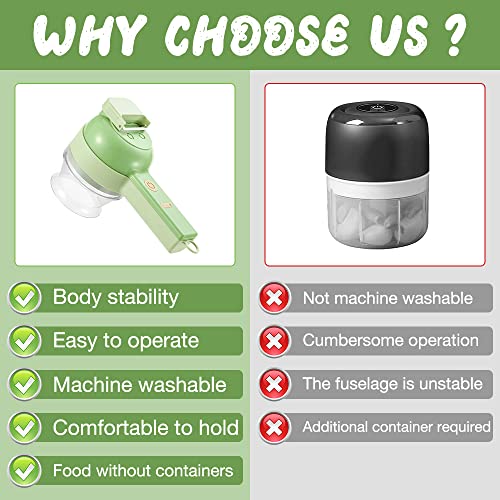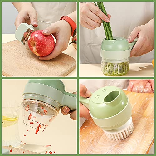 - 4 in 1 Electric Vegetable Cutter Set: Our food processor has 4 in 1 functions for slicing, chopping, peeling and cleaning brushes. This means you have an electric vegetable cutter, an electric meat grinder and an electric cleaning brush all in one.