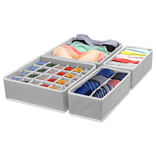Generic - Sklle 4 Set Foldable Underwear Drawer Organizer and Closet Dividersï¼Å’ for Ties Socks Shorts Bra Underwear Divider Drawer Lidded Closet Home Organizer Container (White)
