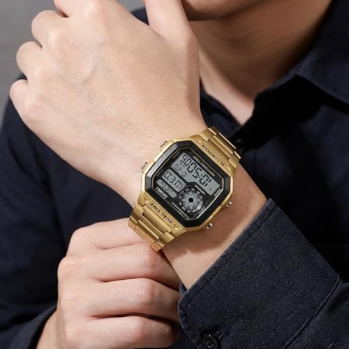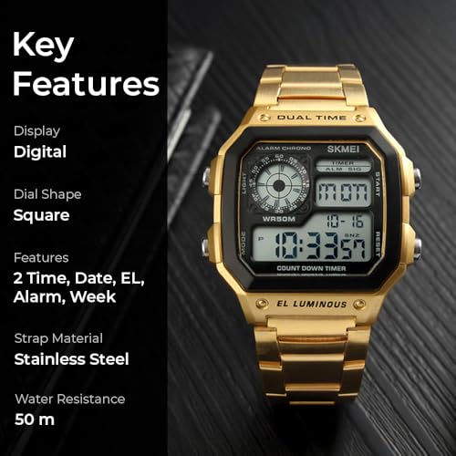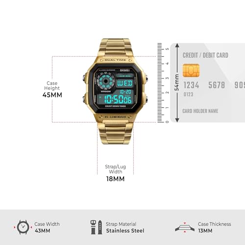 SKMEI - ساعة رياضية رقمية من الفولاذ المقاوم للصدأ للرجال من سكمي- 1335G