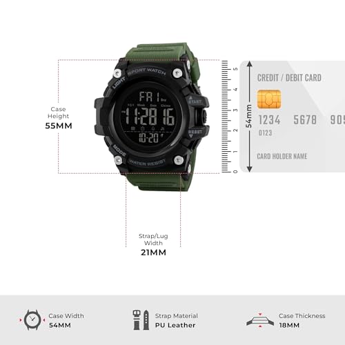 SKMEI - SKMEI Faux Leather 1384 Water Resistant Wrist Watch For Men | Men Sports Watches | Smart Watches For Mens | Digital Wrist Watches For Men, Dial-Color:Black, Band Color:Green