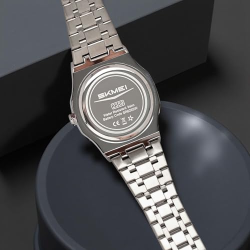 SKMEI - SKMEI Men's Digital Sports Watch Waterproof LED Military Multifunction Smart Watch Stopwatch Countdown Auto Date Alarm Double Snap Gift Wristwatch 2356 (Silver Steel)