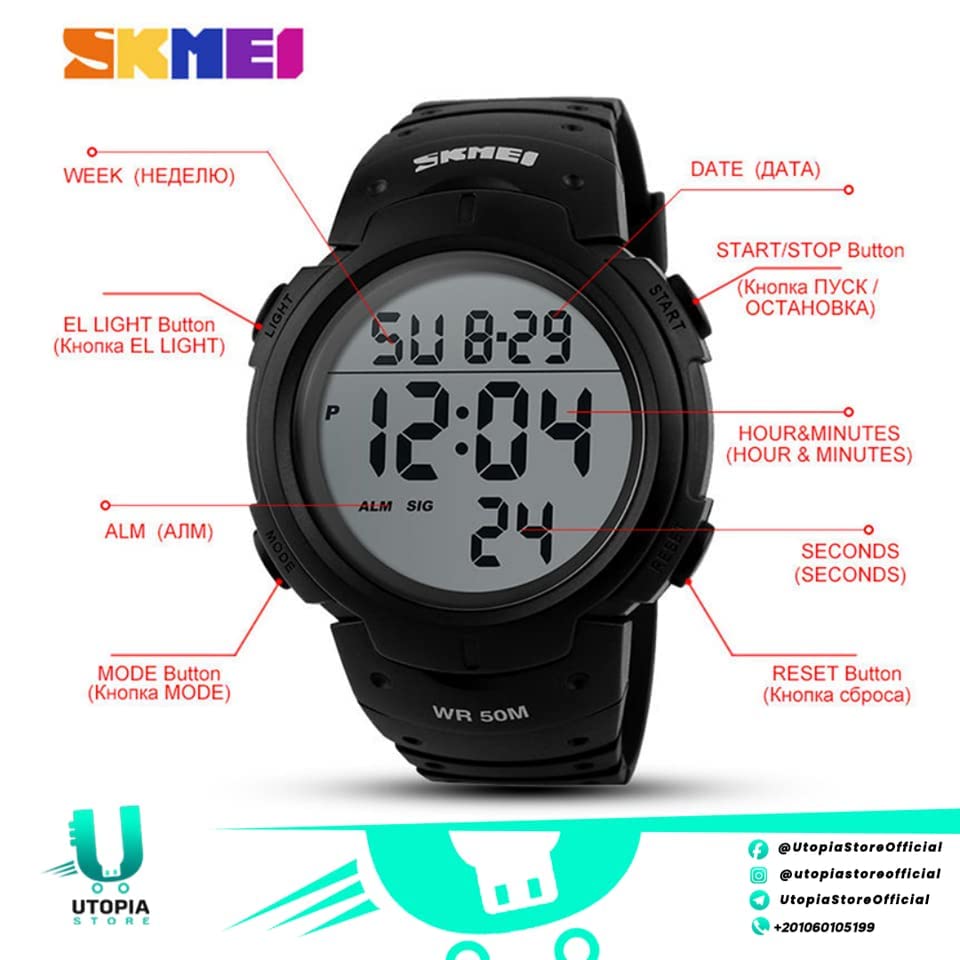 SKMEI - SKMEI Men's Women's Multi-Function Waterproof Sport Watch with LED Backlight Display, Black