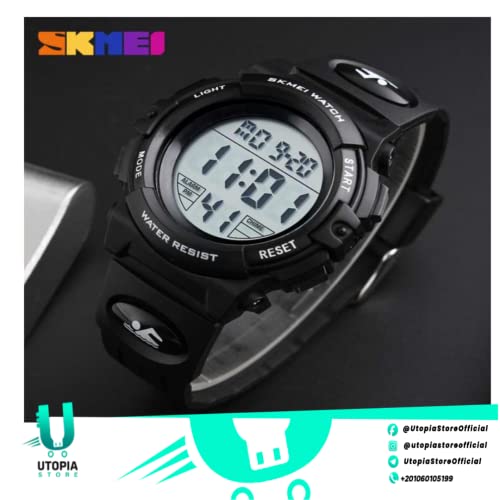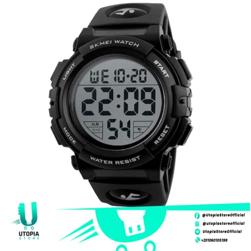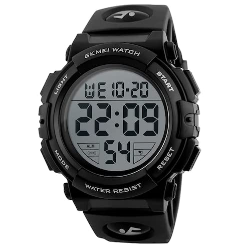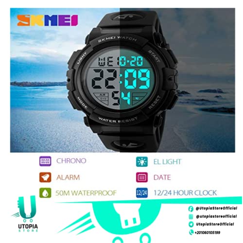 SKMEI - ساعة رياضية متعددة الوظائف للرجال والنساء من سكماي، مقاومة للماء بشاشة بإضاءة خلفية ليد لون اسود، موديل 1258