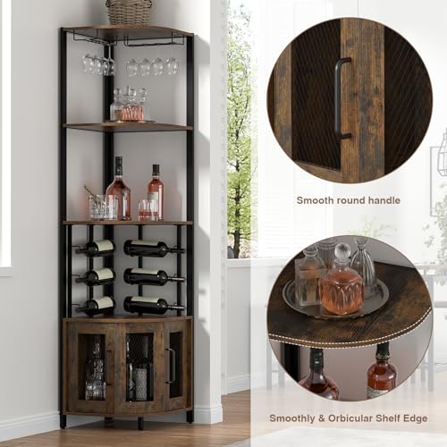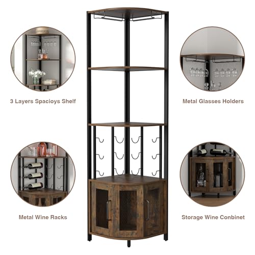 Skokliz - دولاب زاوية مع حامل زجاج، خزانة مشروبات من 4 طبقات مع أبواب شبكية معدنية، خزانة بوفيه مع مجموعة مضادة للانقلاب لتخزين المشروبات والعصائر في المنزل من سكوكليز