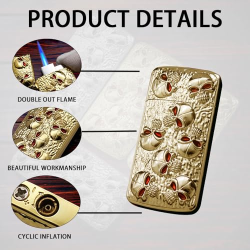 - [تصميم مبتكر] تم تصميم الولاعة الرائعة بعناصر جمجمة، وهي عصرية ومبتكرة. تطلق لهب أزرق مباشرة. تصميم الهيكل القابل للطي يجعل الولاعة فريدة من نوعها. تتميز بإخراج لهب مقاوم للرياح لضمان اشتعال موثوق به في بيئات مختلفة. أداة لا غنى عنها للتخييم في الأماكن الخارجية والرياضة والبقاء على قيد الحياة وغيرها من الأنشطة الداخلية والخارجية.