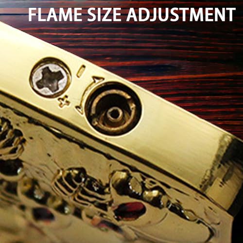 - [لهب البوتان قابل للتعديل] يمكن تعديل صمام تعديل حجم اللهب الموجود أسفل الولاعة باستخدام مفك. يمكن تعديل حجم اللهب في اتجاه "+ أو -"، وهو سهل التشغيل. يتميز صمام تنظيم اللهب القابل للنفخ بتصميم متكامل ويمكن نفخه بشكل دوري. بما أن لوائح الشحن الجوي لا تسمح بشحن غاز البوتان، يرجى ملء الولاعة بالغاز قبل الاستخدام.