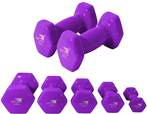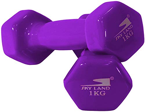 SKY LAND - SKY LAND Classical Dumbbells Hand Weights Set of 2 - Vinyl Coated Exercise & Fitness Dumbbell for Home Gym Equipment Workouts Strength Training, 1Kg X 2 Purple, EM-9219-1