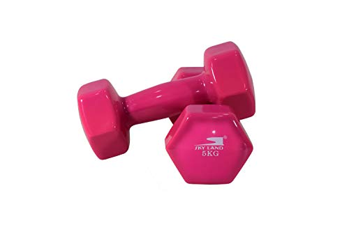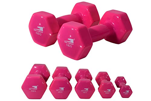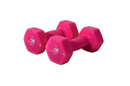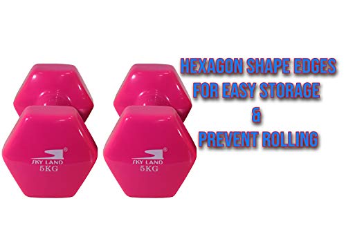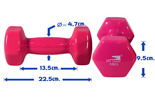 SKY LAND - SKY LAND Classical Dumbbells Hand Weights Set of 2 - Vinyl Coated Exercise & Fitness Dumbbell for Home Gym Equipment Workouts Strength Training, 5Kg X 2 Pink, EM-9219R-5