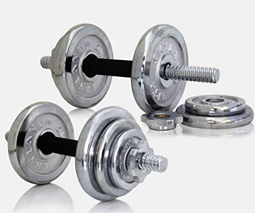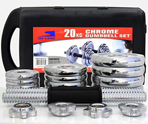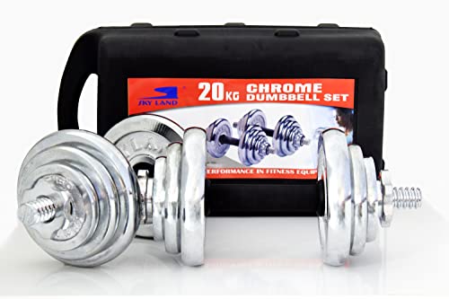 SKY LAND - SKY LAND Fitness Adjustable Chrome Dumbell Set with molded case for Weight Lifting Home workout & Strength Training Exercises-20 Kg Chrome Dumbbell Set EM-9227-20