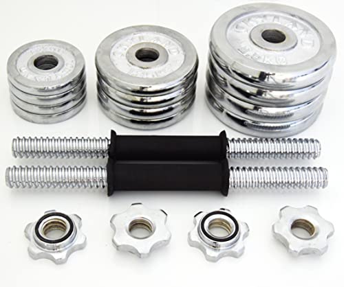 - 💪【DURABLE CONSTRUCTION】---SKY LAND Chrome Dumbbell set is made of high quality cast iron with chrome finish. Durable iron weight plates have a semi-gloss finish, premium grade, quality engineered and built to last. Ultra durable and is resistant to chipping, crackling ,peeling and waterproof, rustproof. Threaded ends with star-lock collars provide a safe, secure workout and easy weight plate changes.