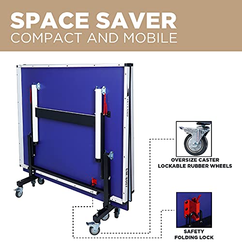 - [السلامة والتخزين في مكان صغير] يجعل تصميم طاولة تنس الطاولة المكونة من نصفين وعجلات قابلة للقفل 3 بوصات من سكاي لاند EM-8007 سهلة اللف والتحريك في حالة عدم الاستخدام. تتميز بتصميم هيكل فريد حيث يحتوي كل نصف طاولة على عمود متحرك مستقل مما يسمح بفصل النصفين بالكامل واستخدامهما كطاولات مستقلة متعددة الاستخدامات.