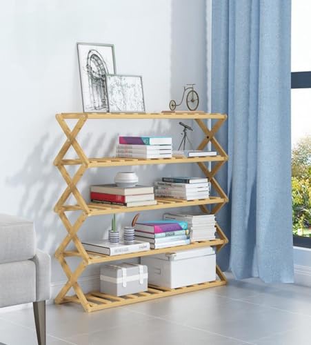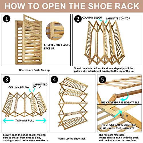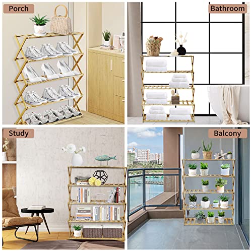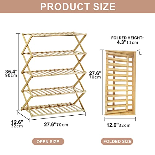 SKY-TOUCH - رفوف أحذية قابلة للطي من 5 طبقات من سكاي-تاتش، رف أحذية بامبو قابل للطي متعدد الوظائف، رف أحذية قائم بذاته، رفوف أحذية متينة قائمة بذاتها للشرفة والمدخل وغرفة المعيشة