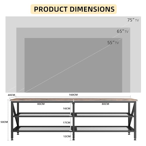 - Spacious and Sturdy Construction: Measuring 160CM(L) x 40CM(W) x 50CM(H), this TV stand can securely hold up to a 65-inch TV. The reinforced frame on both sides enhances stability and durability. Constructed with solid metal frames and MDF board, this TV stand is built for long-term use and can support a maximum load capacity of 68KG.