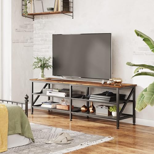 SKY-TOUCH - SKY-TOUCH TV Stand : Modern TV Table Wide TV Entertainment Center with Storage Shelves Sturdy Wooden TV Console Table with Metal Frame for Living Room (160 * 40 * 50CM Tiger Wood)