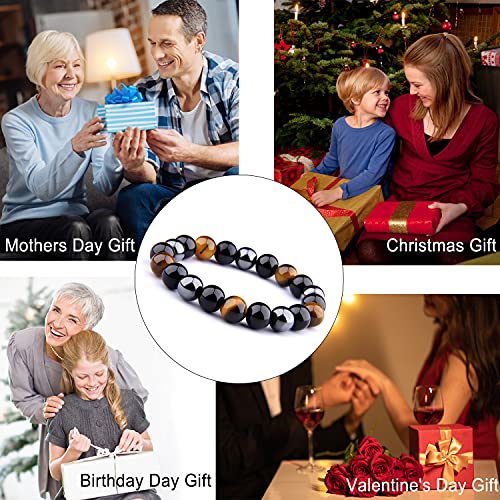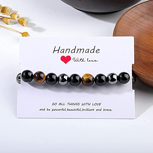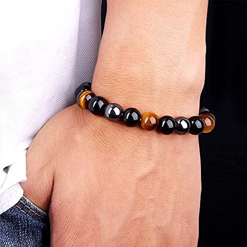 SKYOPEN - سكيه اوبن سوار حماية ثلاثي يجلب الحظ والازدهار زجاج بركاني اسود - حجر الدم - عين النمر - اساور حجرية للبالغين من الجنسين